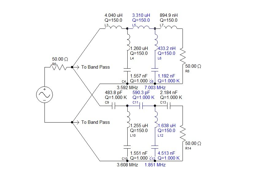 Please, see some parts values from schematics below. On a triplexer PCB 20M is 160M, 15M is 80M and 10M is 40M.