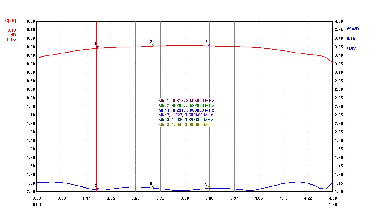 The graph below shows 80M band filter SWR and Isolation for 160 and 40 meter bands..