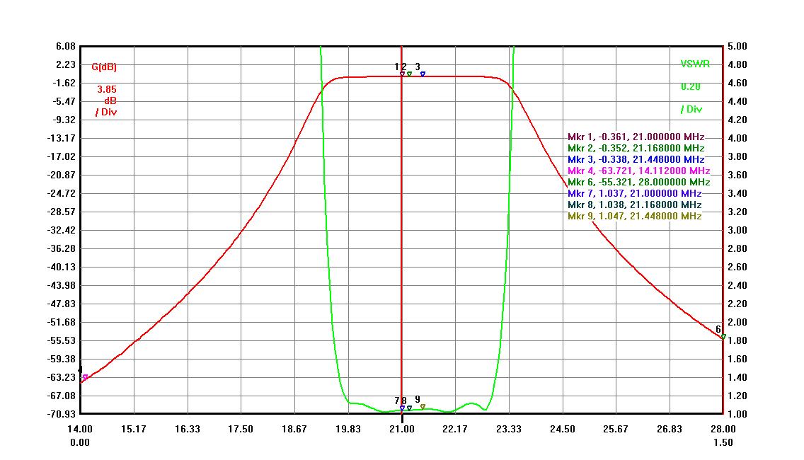The graph below is for 15M BPF and Triplexer together when other triplexer band ports connected to 10 and 20 meter BPFs.