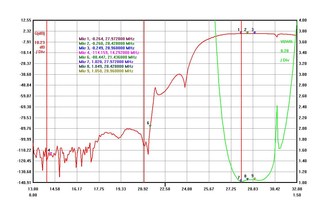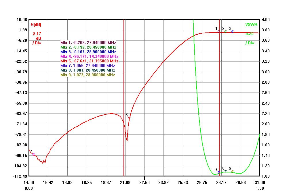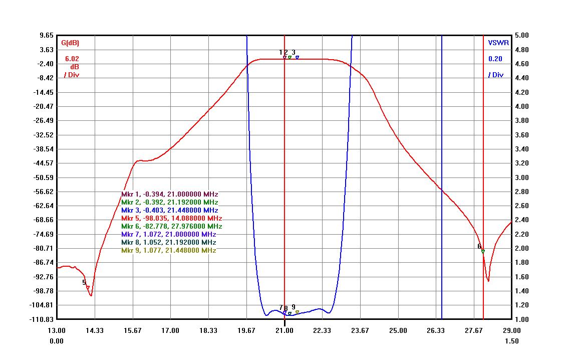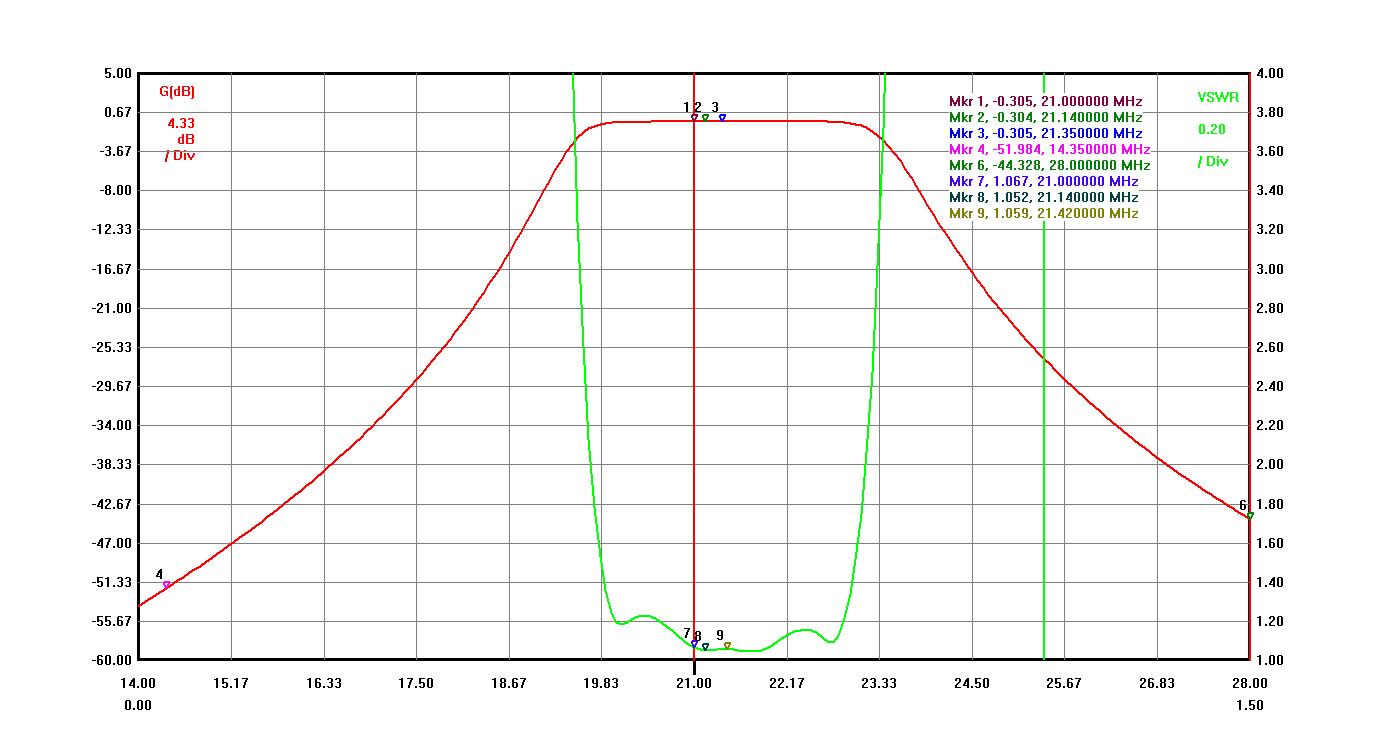 Band isolation can be easily increased to -50dB for 15M band with some different capacitor values. Increased band isolation brings Insertion Loss to a little higher value to -0.27-0.28dB value.