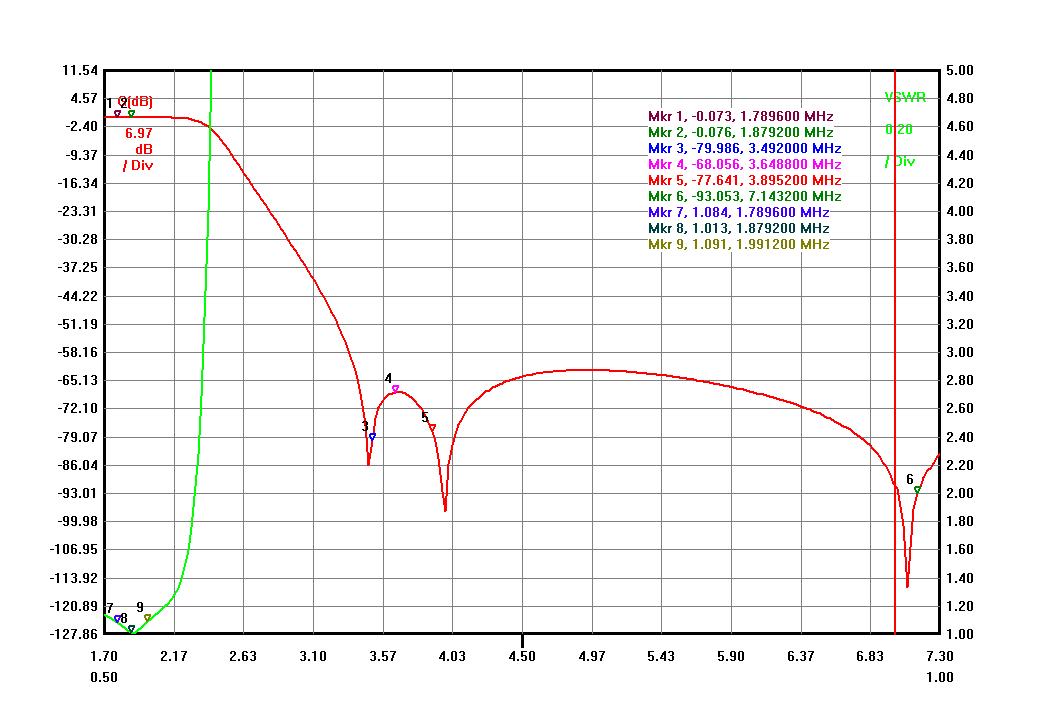 | VA6AM LPF | < 0.11 dB | > 70 dB | > 86 dB |