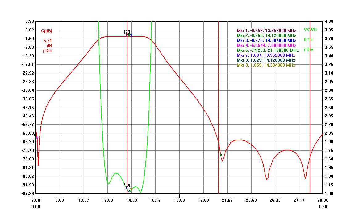 This BPF compare to a very popular W3NQN BPF has much better band attenuation (with the same number of required parts ).