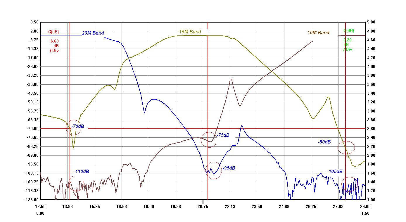 - Isolation between 10 and 20 meter band > -100 dB.