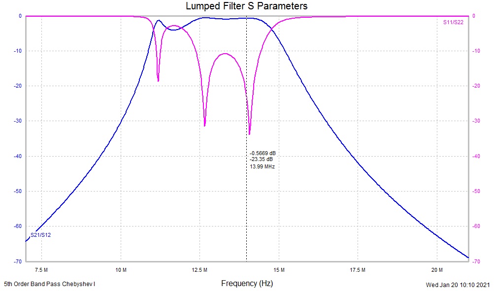 - The filter graph is much closer to a software model shown above in this post. It is symmetrical as it should be and without any unexpected peaks.