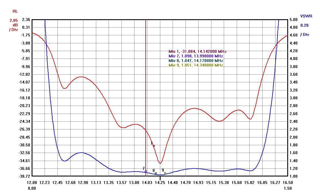 - Return Loss is from 20dB to 13dB, which is SWR from 1.22 to 1.57